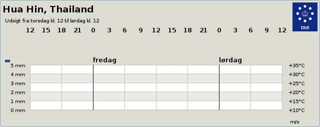Vejret i Hua Hin Der foreligger ingen klimadata fra Hua Hin. Alle tidsangivelser er i lokal tid. Kilde: www.dmi.dk
